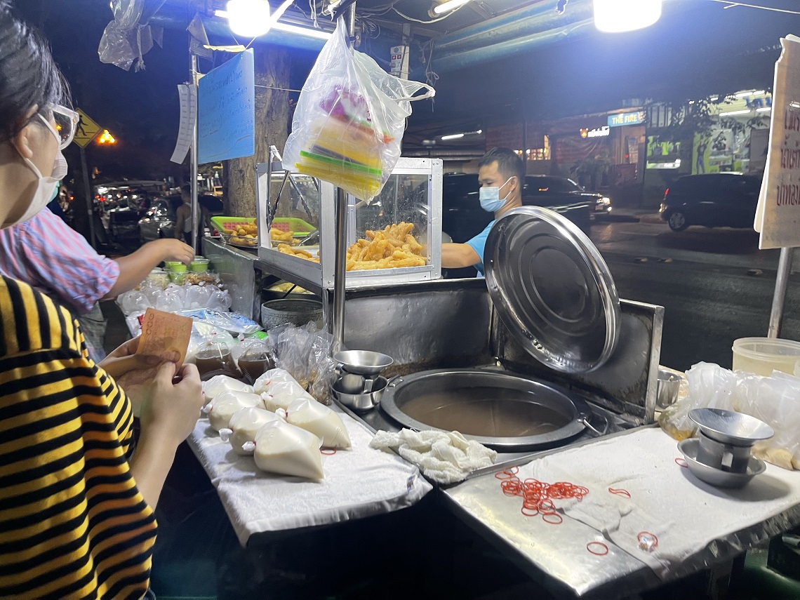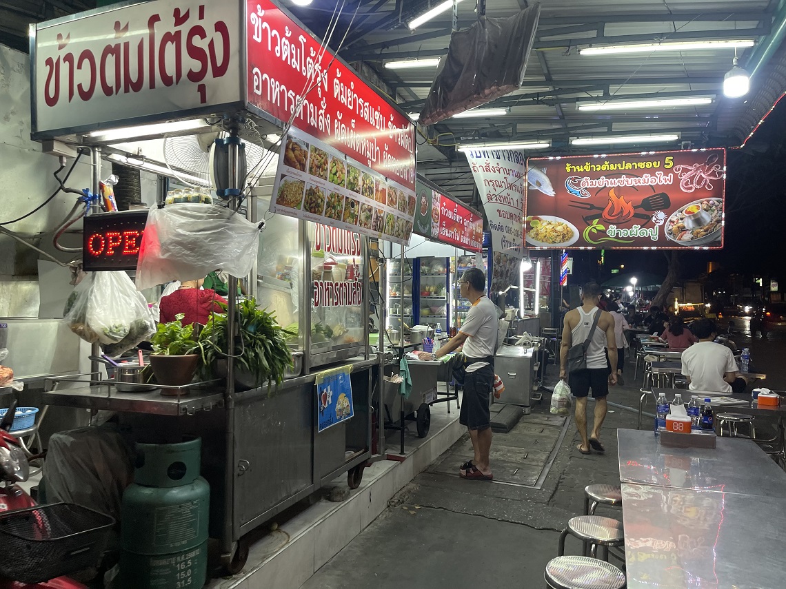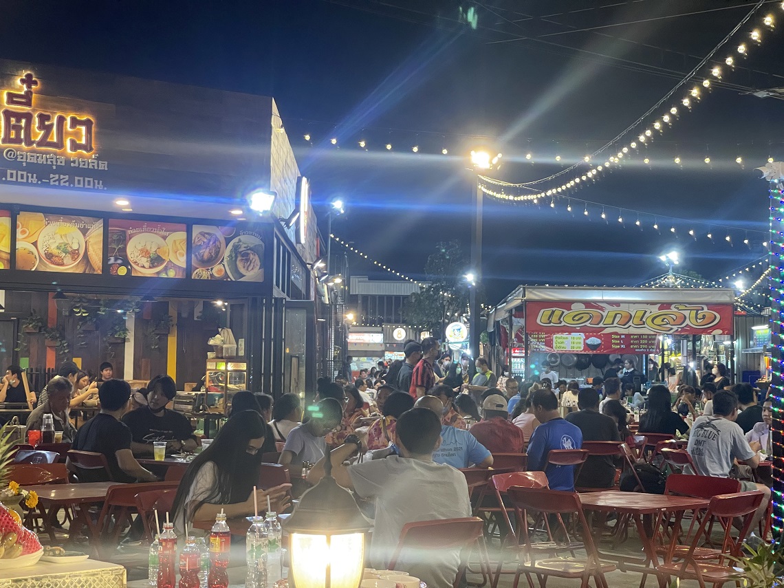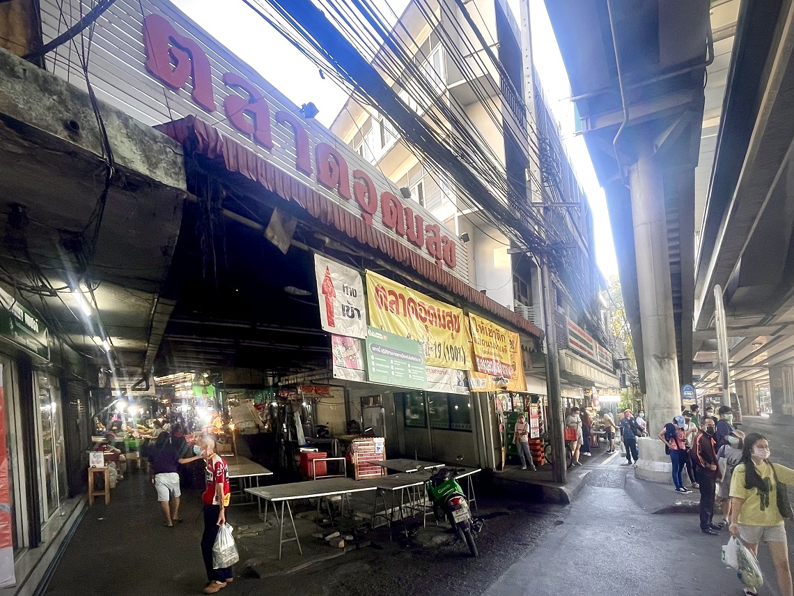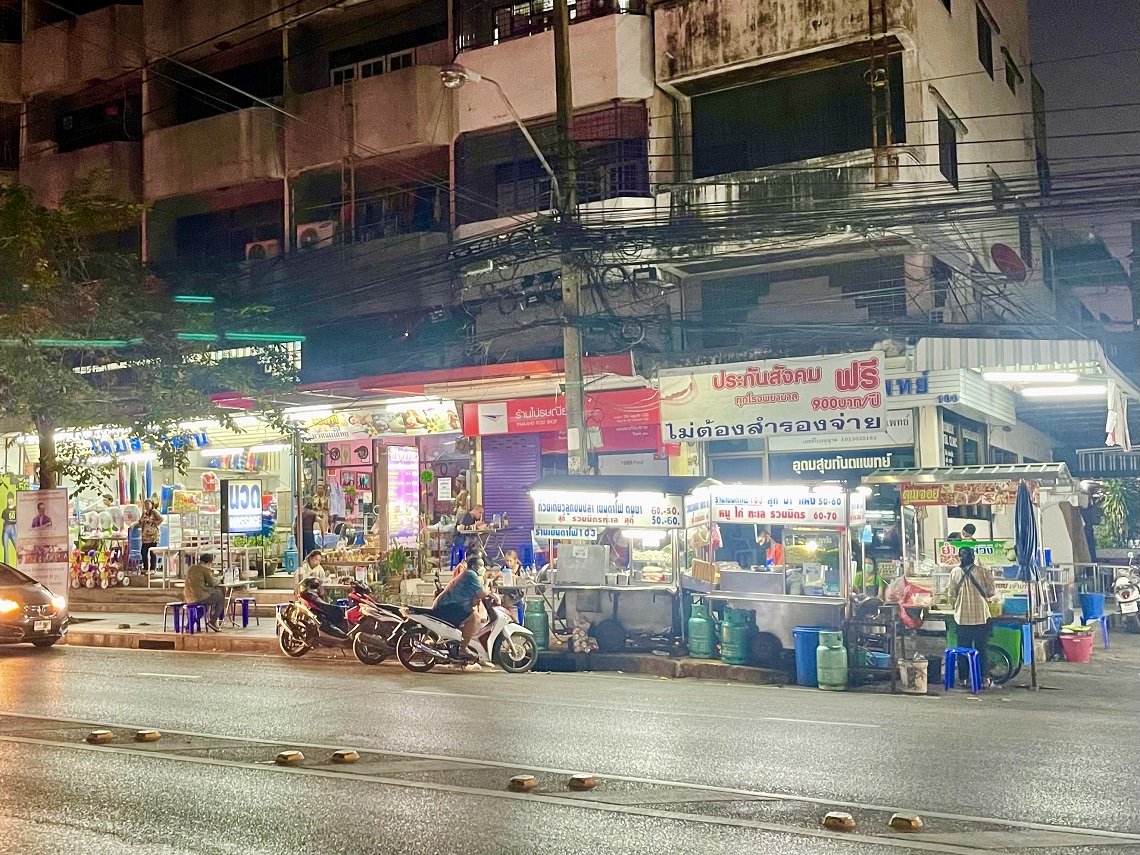 พอออกมาก็จะเจอกับแบบไทย ๆ ที่อยุ่ติดกับตลาดสดอุดมสุข สตรีทฟู้ดที่นี่มีมากมาย นานาชนิดที่จะชวนให้คุณอดไม่ได้ที่ต้องลิ้มลองความอร่อยแบบไทย ๆ นี้ ซึ่งร้านอาหารสตรีทฟู้ดนี้จะมียาวไปจนถึงช่วงกลางของถนนเป็นระยะ ๆ นานาชาติ ทั้งเหนือ กลาง อีสาน ใต้ได้รวมมาให้คุณบนถนนเส้นนี้