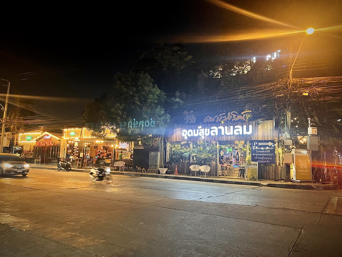 พอเริ่มเข้าช่วงกลางค่อนปลายของถนนก็จะเริ่มเจอกับสถานที่ ที่คนเหงาและคนท่องราตรีมารวมกันอย่างร้านบาร์ และสวนอาหารต่าง ๆ ให้เลือกสรร ตามอารมณ์สุนทรีที่คุณต้องการเข้าไปปลดปล่อยได้เลย