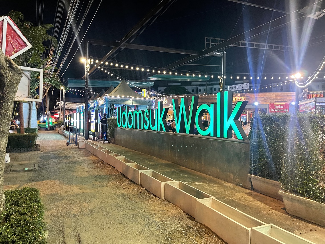 และจากตรงนั้นก็จะเจอกับ Udomsuk Walk สถานที่นัดพบสุดฮิตของคนย่านนี้ ที่เหมือนตลาดนัด รวบรวมร้านอาหารมาให้คุณเยอะมากๆ บอกเลยที่นี่ อาหารการกินไม่มีอดแน่นอน อยากกินอะไรต้องได้กิน และยังมีไปจนสุดถนนจบที่แยกศรีนครินทร์ ก่อนจะถึงสวนหลวง ร.9